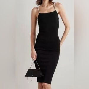 Camila Coelho black Jude rhinestone straps fine knit dress M