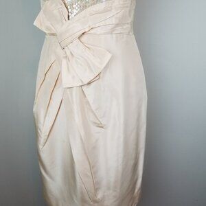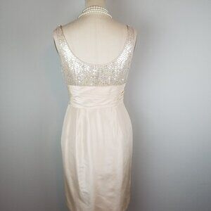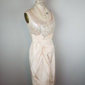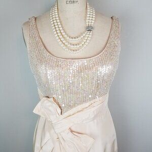 Vintage Carmen Marc Valvo Sequin & Peach Silk Champagne Cocktail Dress * Size 6
