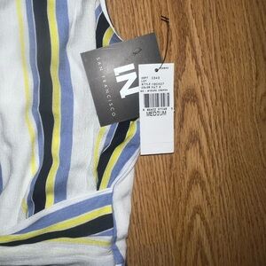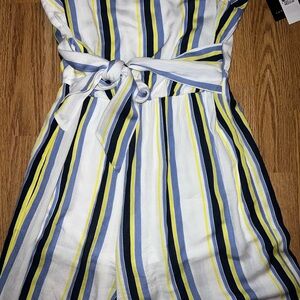 Super cute white, blue, and yellow jumpsuit new with tags size medium!!