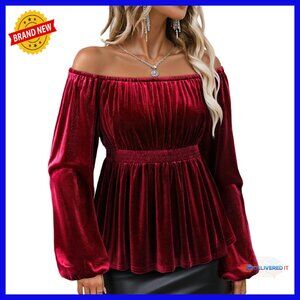 Velvet Off Shoulder Peplum Blouse Long Sleeve Elegant Evening Top