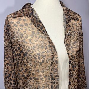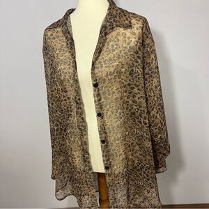 Vintage animal print sheer long line blouse swimsuit coverup leopard mobwife top