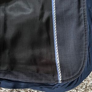 Chic dark navy blazer by Banana Republic. Tailored fit with classic lapel. Ideal for professional settings.