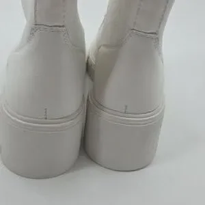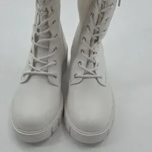 Women's White Knee-High Lace-Up Boots PU and Knit Material New