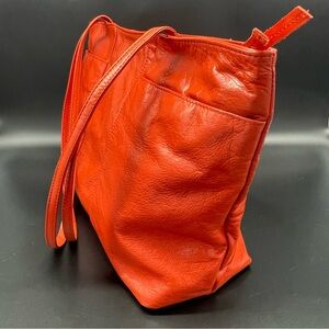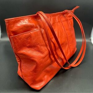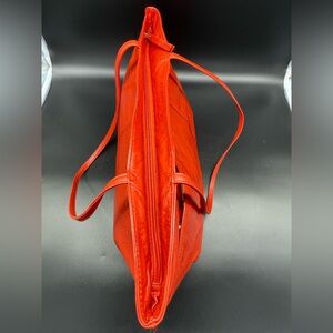 Bold orange leather tote shoulder bag with sleek design. Perfect for daily essentials. Stylish and functional. Perfect vibrant color for spring, summer, or fall seasons!! Very light weight. Super soft leather.