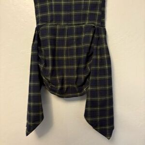 Innovare denim Ceyhun Grid Plaid Fringe Spaghetti Mini Dress size medium NEW