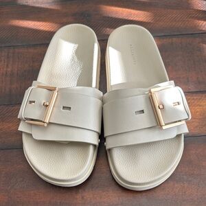All Saints Gently Loved Elegant Cream Slide Sandals