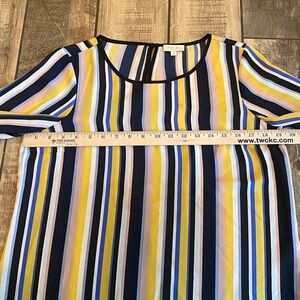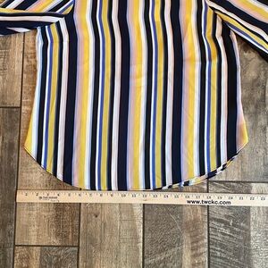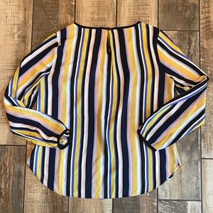 Brighten your look with this LOFT blouse. Features bold stripes in yellow, blue, and white. Perfect for any occasion.