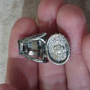 Vintage Elegant Oval Black Stone Silver & Gold Tone Pendant For Necklace