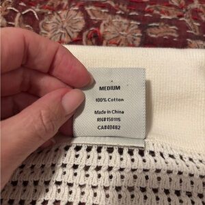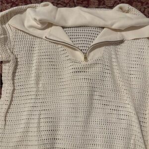 Elegant cream knit sweater with intricate design. Ideal for layering.