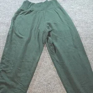 Material is 78% Lyocell, 19% polyester and 3% lycra spandex. Joggers are in good used condition and show little to no signs of wear.