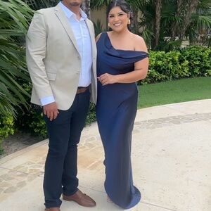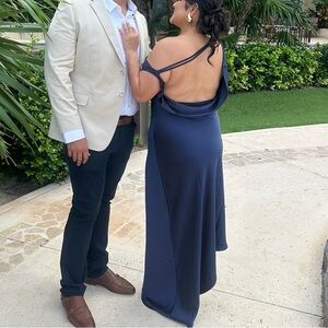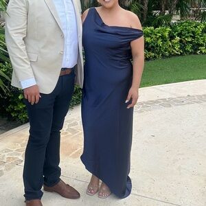 Meshki Yvette Slip Maxi Dress With Asymmetrical Hem- Navy