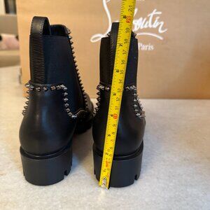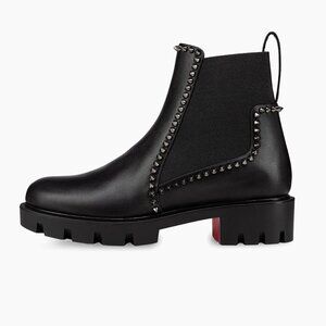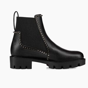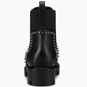 Christian Louboutin 3221092 Out Lina Spike Lug Black Calf Ankle Boot, 38.5