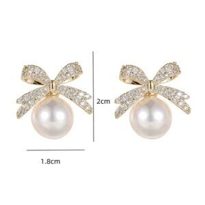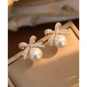 Anthropologie Pearl and Bow Gold Rhinestone Earrings