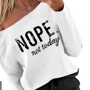 ChicMe "NOPE. Not Today" Off-the-Shoulder Graphic Sweatshirt - XL White/Olive Green