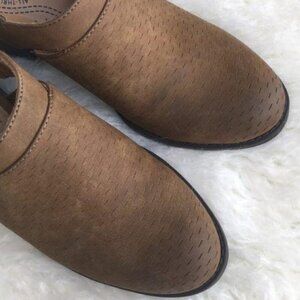 Brand new in box. Box has no cover. Faux leather. Size 8.5 M. Color is listed as olive but they look more brown to me. Photos taken in natural lighting.