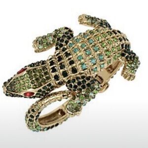 Betsey Johnson Limited Edition Rhinestone Bling Alligator Hinged Bangle. Rare