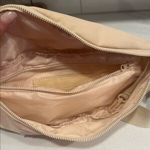 Chic BEIS belt bag. Tan hue. Braided strap detail. Ideal for travel.