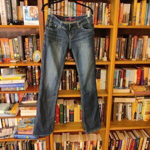 ROCK & roll cowgirl black jeweled cross jeans size 28 euc
