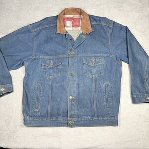 VTG Marlboro Country Store Men's Size XL Jean Jacket Leather Collar Denim