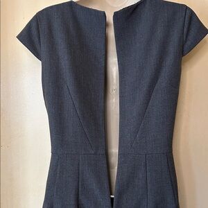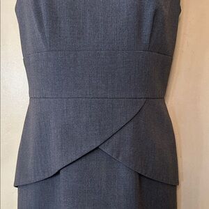 Calvin Klein grey business casual dress . This dress is a classic, with its scoop neck, cap sleeves and peplum. Fully lined. Ideal for office or evening wear. Features a flattering silhouette. Like new condition