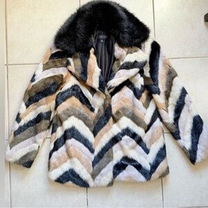 TopShop Multicolor Chevron Faux Fur Coat