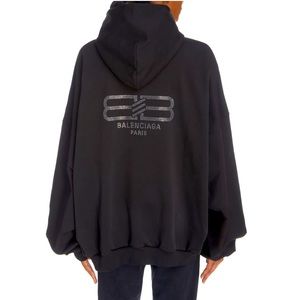 NEW🔥BALENCIAGA Gender Inclusive Beaded Back BB Logo Oversized Hoodie🔥authentic, brand new, never worn, color black, size 3 (fits height 5’7 ft), comes with authenticity card and tag attached.