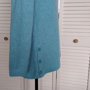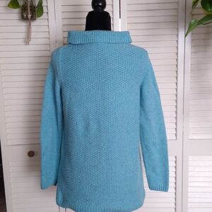 Talbots Mock Turtleneck Sweater Turquoise Speckled Side Buttons S