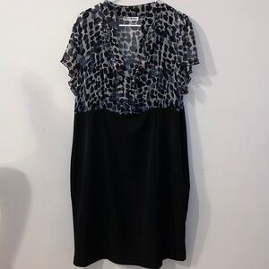 Olivia Matthews Black Gray Patterned Midi Dress Size 18W