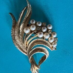 3/$25 💋 Vintage Gold Pearl Cluster Brooch with Leaf Design