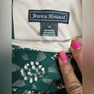 Jessica Howard Emerald Green Lace Dress w/3/4 sleeves and nude lining size 10