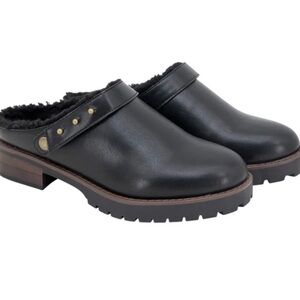 Kensie Black Leather Mules with Shearling Lining size 7.5