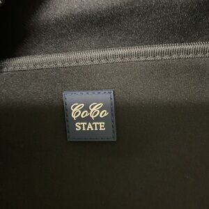 Stylish black and white tote bag featuring bold stripes. Perfect for everyday use.