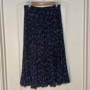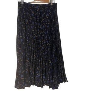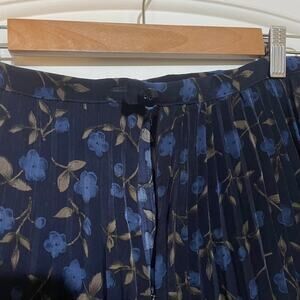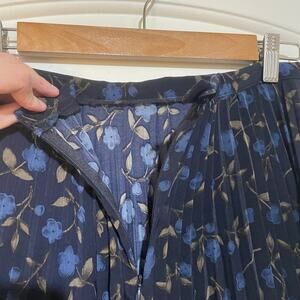 Vintage Sag Harbor Pleated Blue Black Floral Midi Skirt Size 10 Romantic Fairy