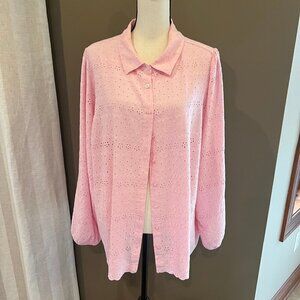 Woman's Torrid Beautiful Pink Eyelet Long sleeve button down blouse, Size 3X