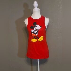 Vibrant red tank top featuring a playful Mickey Mouse graphic. Perfect for casual wear.