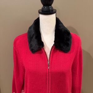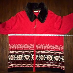Croft & Barrow Festive Snowflake Christmas Faux Fur Cardigan Sweater, Size XL
