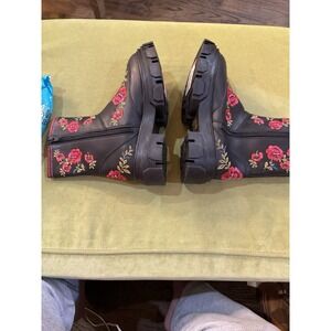 Farm Rio Black Boho Mid Boot Embroidered Rose Stitched Women Size 6