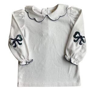 “Our Emma's Elbow Patch Top in Worth Avenue White makes our heart skip a beat with the Nantucket Navy bow elbow patches!
