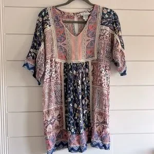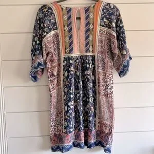 This stunning midi dress features a beautiful blue and cream color palette that is perfect for any occasion. The flowing silhouette offers a comfortable fit while exuding elegance and style. Ideal for summer gatherings or casual outings, this dress is a must-have addition to your wardrobe. Measures 19 inches pit to pit; 32 inches in length. 💯% rayon