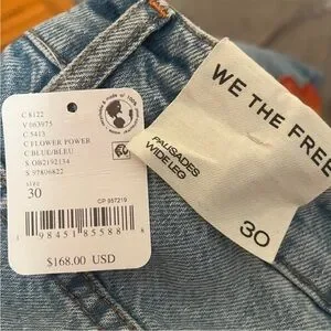 NWT We The Free Palisades Flower Power Wide Leg Jeans Size 30