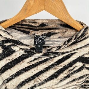 Clara Sun Woo Womens Animal Print Top Size XL Long Sleeves Stretch Gathered
