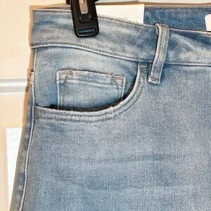 New With Tags MoCo14W Women's High Rise Wide Leg Jeans Raw Hem Tummy Control