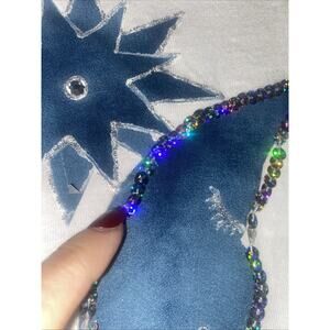 Stars and moon are green with silver glitter paint around. The moon is outlined with sequins. Some sequins are loosening