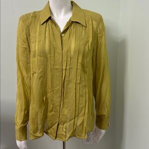 Green pleated button front blouse