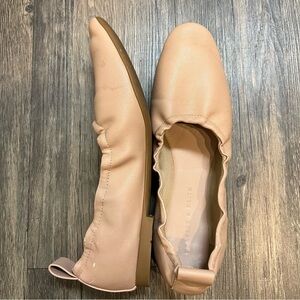 Charles & Keith Ruched Nude Leather Ballerina Flats Slip On Shoes TanSize 6