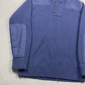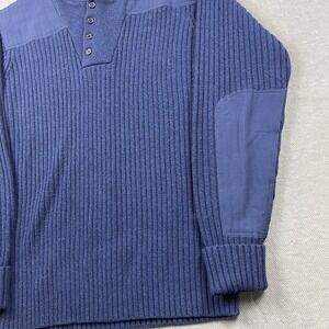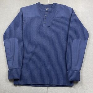LL Bean Sweater Mens XL Tall Blue Pullover Wool Commando Henley Military Army
