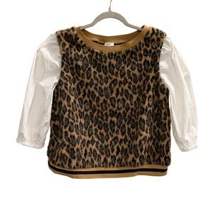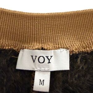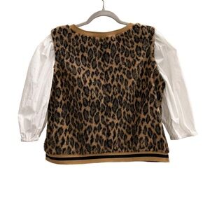 VOY Textured Leopard Print Puff Sleeve Shirt Size Medium