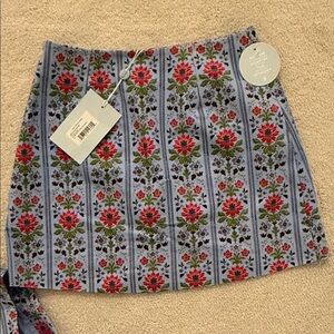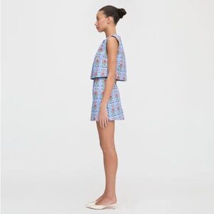 Stylish sleeveless dress with a vibrant floral pattern. Features a blue base with colorful accents.