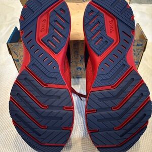 Bold star design. Red and blue color scheme. Perfect for athletic activities.