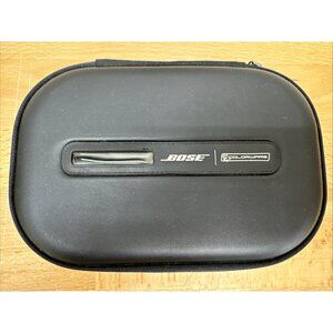 The product is a black Bose Colorware QC25 noise cancelling wired headphones CASE ONLY, which includes a charge plug. The headphones feature a 3.5mm jack connectivity and come in a sleek black color. The case is designed specifically for the Bose QC25 model, providing a convenient and protective storage solution for the headphones. It is ideal for those looking to keep their headphones safe and secure while on-the-go.